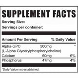 • Mejora Cognitiva Poderosa: El Alfa GPC es conocido por su capacidad para aumentar la producción de acetilcolina, un neurotransmisor clave para el aprendizaje y la memoria.