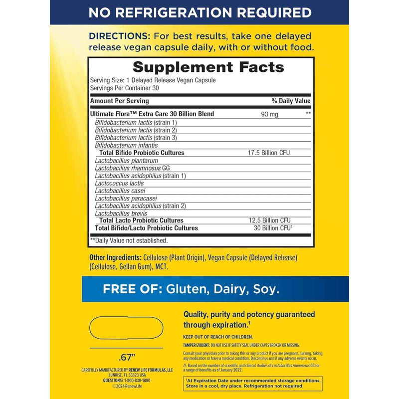 Renew Life - Ultimate Flora Extra Care Probiotic (30 mil millones de UFC - 30 Cápsulas Veganas)